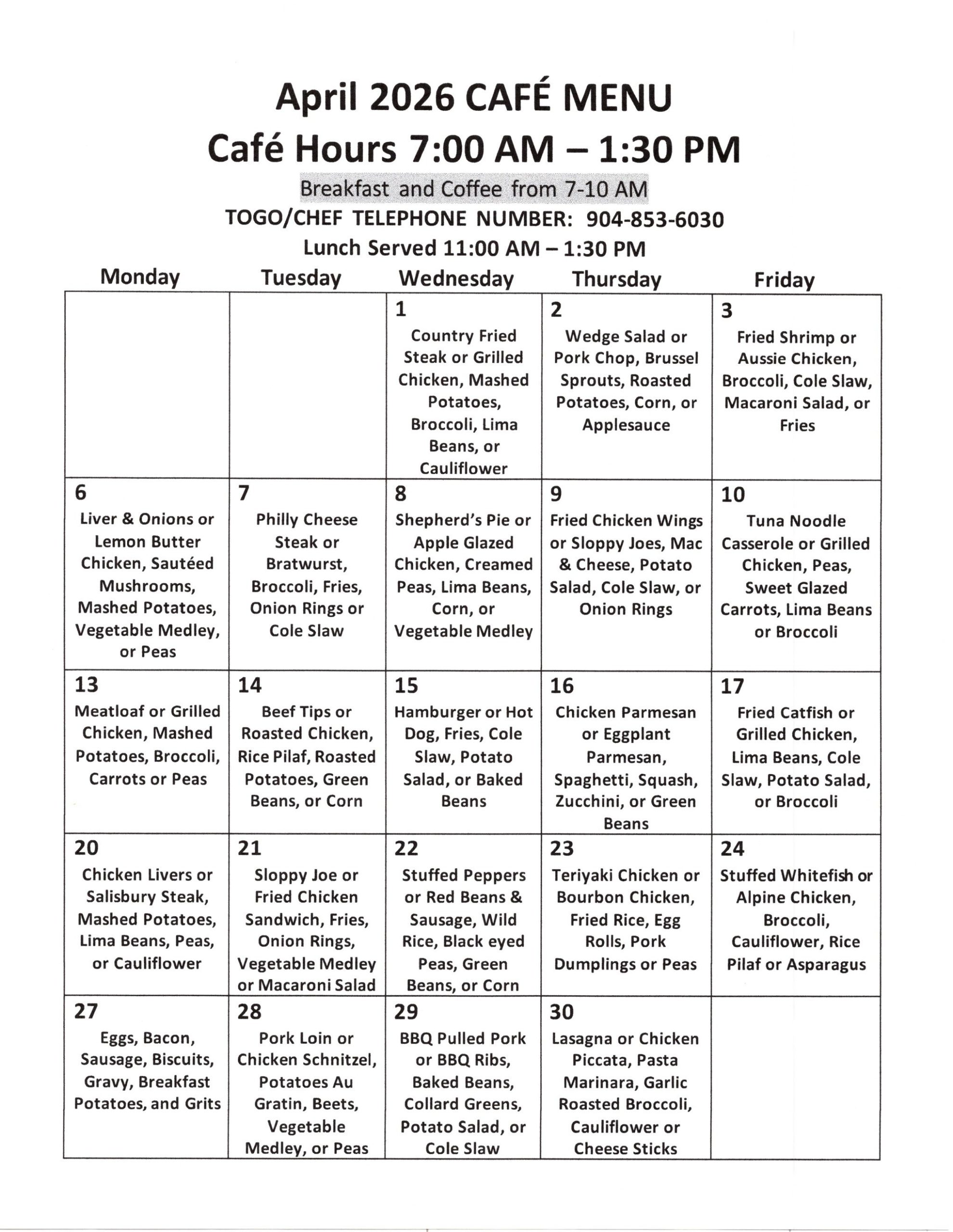 - Affordable and nutritious chef-prepared meals served Monday through Friday